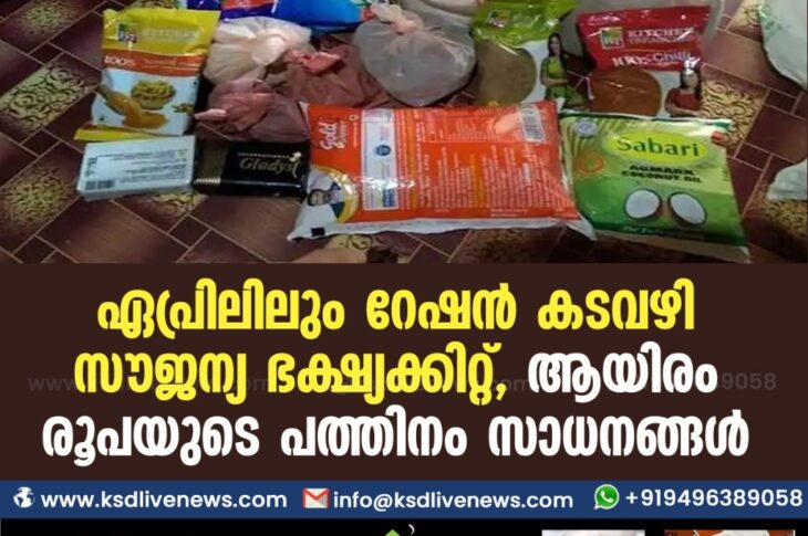 ഏപ്രിലിലും റേഷൻ കടവഴി സൗജന്യ ഭക്ഷ്യക്കിറ്റ് , ആയിരം രൂപയുടെ പത്തിനം സാധനങ്ങൾ