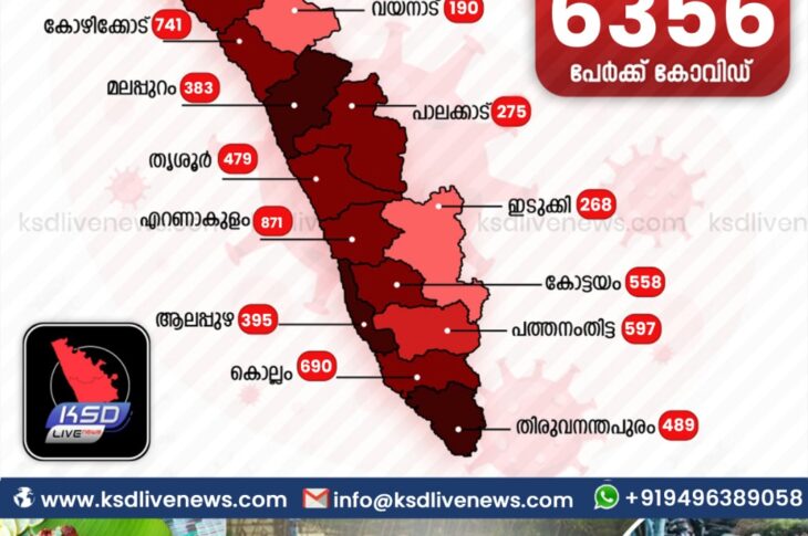 കേരളംകോവിഡ് 19 സംസ്ഥാനത്ത് ഇന്ന് 6356 പേർക്ക് കോവിഡ് സ്ഥിരീകരിച്ചു. സമ്പർക്കം വഴി 5817 പേർക്കും ; ആശ്വാസമായി 6380 പേർക്ക് രോഗ മുക്തിയും ; കാസർഗോഡ് ജില്ലയിൽ 93 പേർക്ക് പുതിയ കോവിഡ് കേസുകൾ ; മരണം 20February 3, 2021