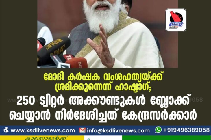 ദേശീയം മോദി കർഷക വംശഹത്യയ്ക്ക് ശ്രമിക്കുന്നെന്ന് ഹാഷ്ടാഗ് ; 250 ട്വിറ്റർ അക്കൗണ്ടുകൾ ബ്ലോക്ക് ചെയ്യാൻ നിർദേശിച്ചത് കേന്ദ്രസർക്കാർFebruary 1, 2021