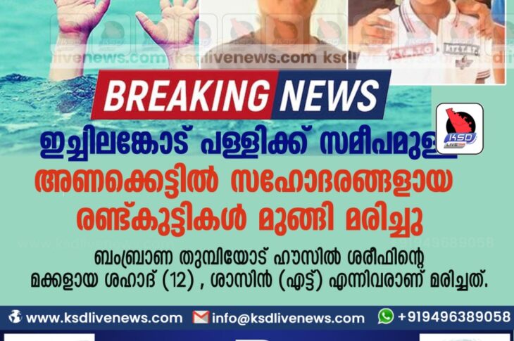 പ്രാദേശികം ഇച്ചിലങ്കോട് പള്ളിക്ക് സമീപമുള്ള അണക്കെട്ടിൽ സഹോദരങ്ങളായ രണ്ട് കുട്ടികൾ മുങ്ങി മരിച്ചുJanuary 31, 2021