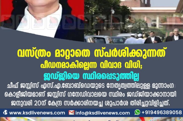 ദേശീയം വസ്ത്രം മാറ്റാതെ സ്പര്ശിക്കുന്നത് പീഡനമാകില്ലെന്ന വിവാദ വിധി; ജഡ്ജിയെ സ്ഥിരപ്പെടുത്തില്ല ;January 30, 2021