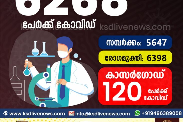 കേരളംകോവിഡ് 19 സംസ്ഥാനത്ത് ഇന്ന് 6268 പേർക്ക് കോവിഡ് സ്ഥിരീകരിച്ചു. സമ്പർക്കം വഴി 5647 പേർക്കും ; ആശ്വാസമായി 6398 പേർക്ക് രോഗ മുക്തിയും ; കാസർഗോഡ് ജില്ലയിൽ 120 പേർക്ക് പുതിയ കോവിഡ് കേസുകൾ ; മരണം 22January 29, 2021