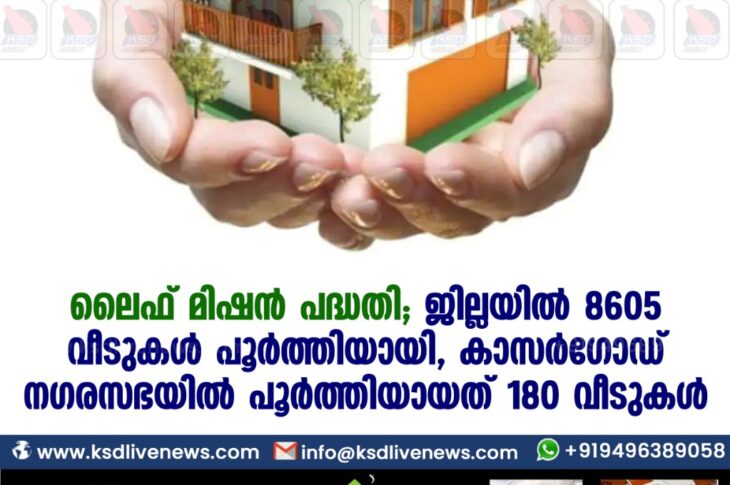 കാസർഗോഡ് ലൈഫ് മിഷൻ പദ്ധതി; ജില്ലയിൽ 8605 വീടുകൾ പൂർത്തിയായി, കാസർഗോഡ് നഗരസഭയിൽ പൂർത്തിയായത് 180 വീടുകൾJanuary 29, 2021