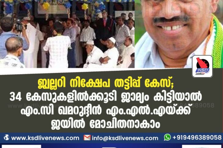 കാസർഗോഡ് ജ്വല്ലറി നിക്ഷേപ തട്ടിപ്പ് കേസ് ; 34 കേസുകളിൽക്കൂടി ജാമ്യം കിട്ടിയാൽ എം.സി ഖമറുദ്ദീൻ എം.എൽ.എയ്ക്ക് ജയിൽ മോചിതനാകാംJanuary 29, 2021