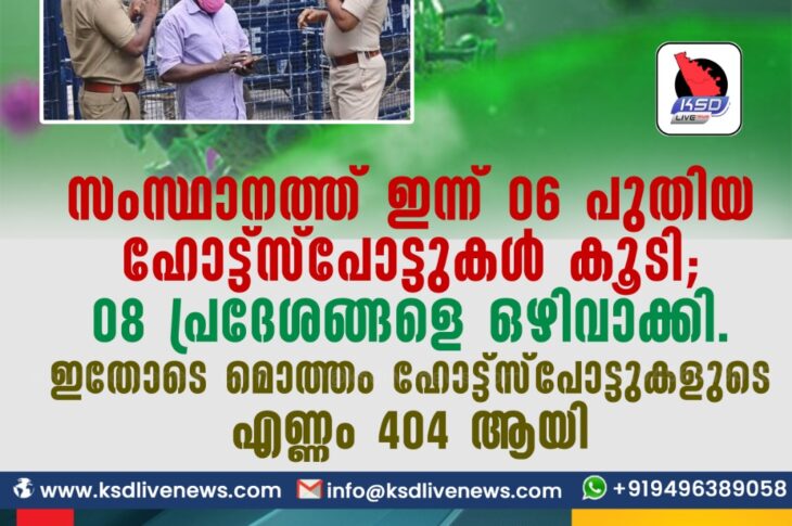 കേരളംകോവിഡ് 19 സംസ്ഥാനത്ത് ഇന്ന് 06 പുതിയ ഹോട്ട്സ്പോട്ടുകള് കൂടി; 08 പ്രദേശങ്ങളെ ഒഴിവാക്കി. ഇതോടെ മൊത്തം ഹോട്ട്സ്പോട്ടുകളുടെ എണ്ണം 404 ആയി.January 28, 2021