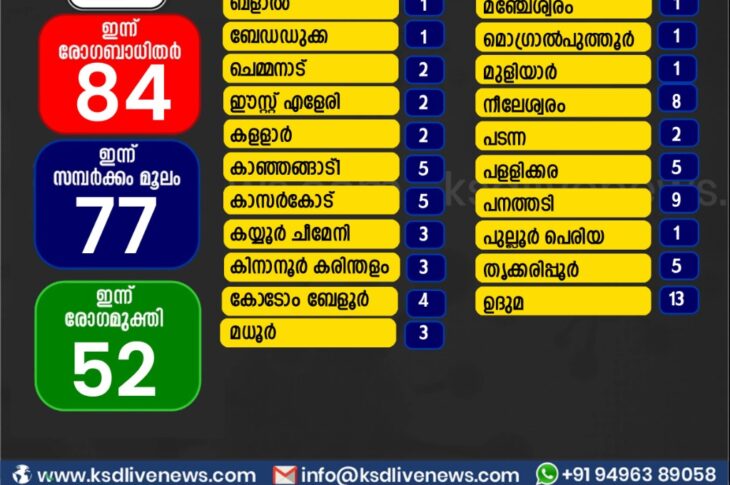 കാസർഗോഡ്കോവിഡ് 19 കാസര്ഗോഡ് ജില്ലയില് കോവിഡ് സ്ഥിരീകരിച്ചവരുടെ തദ്ദേശ സ്വയംഭരണ സ്ഥാപനം തിരിച്ചുള്ള കണക്ക്:January 27, 2021