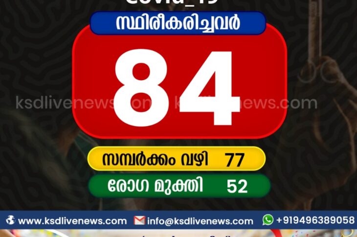 കാസർഗോഡ്കോവിഡ് 19 കാസർഗോഡ് ജില്ലയിൽ ഇന്ന് 84 പേർക്ക് കോവിഡ് സ്ഥിരീകരിച്ചു. സമ്പർക്കം വഴി 77 പേർക്കും. 52 പേർക്ക് രോഗമുക്തിJanuary 27, 2021