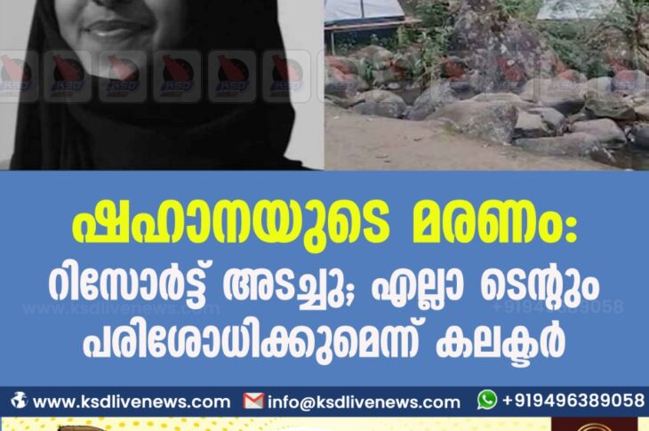 ഷഹാനയുടെ മരണം: റിസോർട്ട് അടച്ചു; എല്ലാ ടെന്റും പരിശോധിക്കുമെന്ന് കലക്ടർ