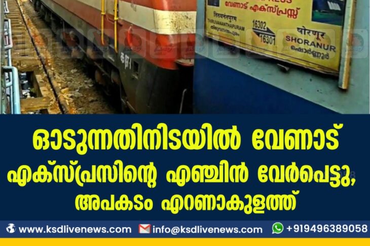 ഓടുന്നതിനിടയിൽ വേണാട് എക്സ്പ്രസിന്റെ എഞ്ചിൻ വേർപെട്ടു , അപകടം എറണാകുളത്ത്