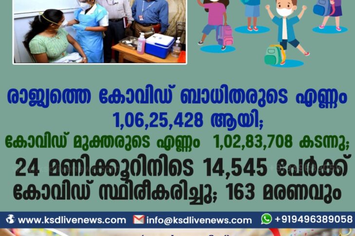 ദേശീയം രാജ്യത്തെ കോവിഡ് ബാധിതരുടെ എണ്ണം 1,06,25,428 ആയി ; കോവിഡ് മുക്തരുടെ എണ്ണം 1,02,83,708 കടന്നു ;24 മണിക്കൂറിനിടെ 14,545 പേർക്ക് കോവിഡ് സ്ഥിരീകരിച്ചു ; 163 മരണവുംJanuary 22, 2021