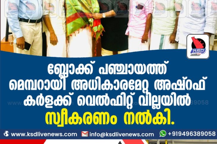 പ്രാദേശികം ബ്ലോക്ക് പഞ്ചായത്ത് മെമ്പറായി അധികാരമേറ്റ അഷ്റഫ് കർളക്ക് വെൽഫിറ്റ് വില്ലയിൽ സ്വീകരണം നൽകി.December 22, 2020