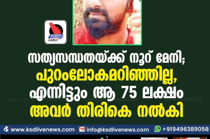 കേരളം സത്യസന്ധതയ്ക്ക് നൂറ് മേനി ; പുറംലോകമറിഞ്ഞില്ല, എന്നിട്ടും ആ 75 ലക്ഷം അവർ തിരികെ നൽകിDecember 19, 2020