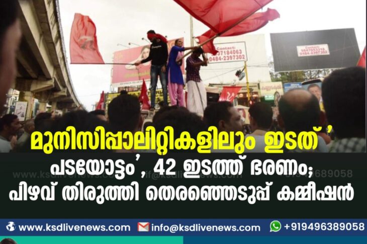 കേരളം മുനിസിപ്പാലിറ്റികളിലും ഇടത് ‘ പടയോട്ടം ‘ , 42 ഇടത്ത് ഭരണം ; പിഴവ് തിരുത്തി തെരഞ്ഞെടുപ്പ് കമ്മീഷൻDecember 18, 2020