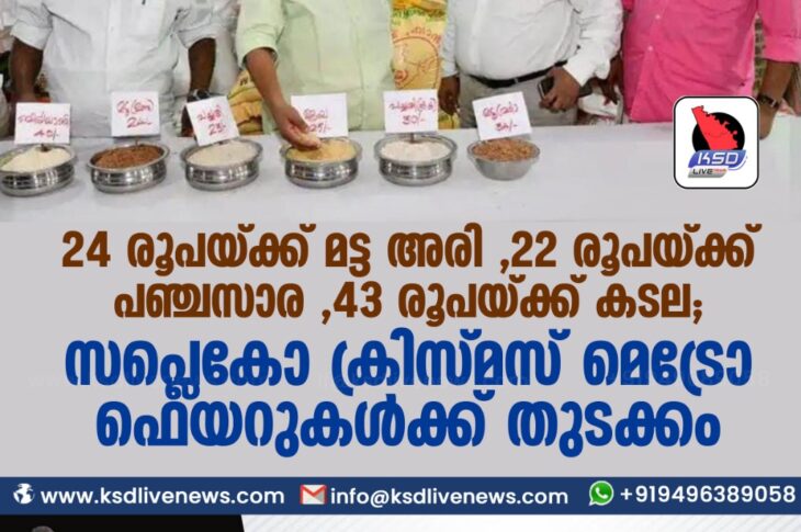 കേരളം 24 രൂപയ്ക്ക് മട്ട അരി , 22 രൂപയ്ക്ക് പഞ്ചസാര , 43 രൂപയ്ക്ക് കടല ; സപ്ലെകോ ക്രിസ്മസ് മെട്രോ ഫെയറുകൾക്ക് തുടക്കംDecember 18, 2020