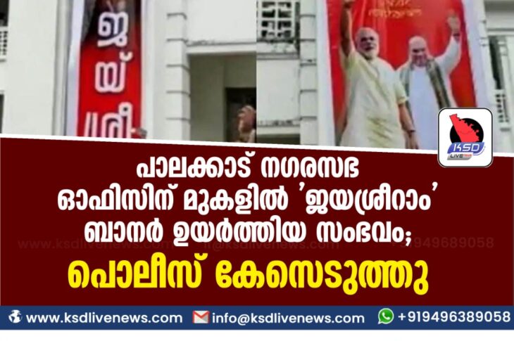 കേരളം പാലക്കാട് നഗരസഭ ഓഫിസിന് മുകളിൽ ‘ ജയശ്രീറാം ‘ ബാനർ ഉയർത്തിയ സംഭവം ; പൊലീസ് കേസെടുത്തുDecember 18, 2020