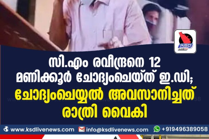 കേരളം സി.എം രവീന്ദ്രനെ 12 മണിക്കൂര് ചോദ്യംചെയ്ത് ഇ.ഡി ; ചോദ്യംചെയ്യല് അവസാനിച്ചത് രാത്രി വൈകിDecember 18, 2020