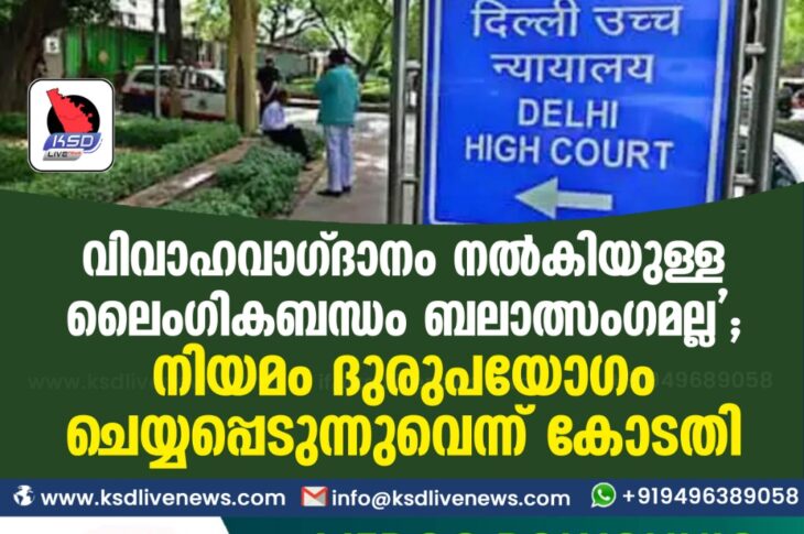 ദേശീയം വിവാഹവാഗ്ദാനം നൽകിയുള്ള ലൈംഗികബന്ധം ബലാത്സംഗമല്ല ‘ ; നിയമം ദുരുപയോഗം ചെയ്യപ്പെടുന്നുവെന്ന് കോടതിDecember 17, 2020