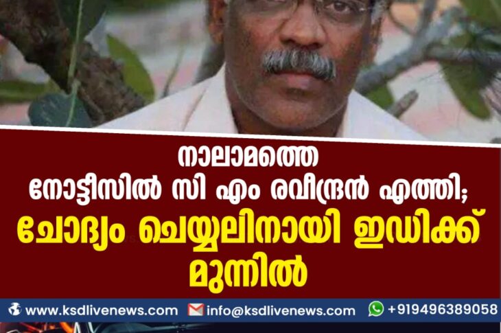 കേരളം നാലാമത്തെ നോട്ടീസിൽ സി എം രവീന്ദ്രൻ എത്തി ; ചോദ്യം ചെയ്യലിനായി ഇഡിക്ക് മുന്നിൽDecember 17, 2020