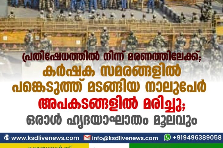 ദേശീയം പ്രതിഷേധത്തിൽ നിന്ന് മരണത്തിലേക്ക് ; കര്ഷക സമരങ്ങളില് പങ്കെടുത്ത് മടങ്ങിയ നാലുപേര് അപകടങ്ങളില് മരിച്ചു; ഒരാള് ഹൃദയാഘാതം മൂലവുംDecember 15, 2020