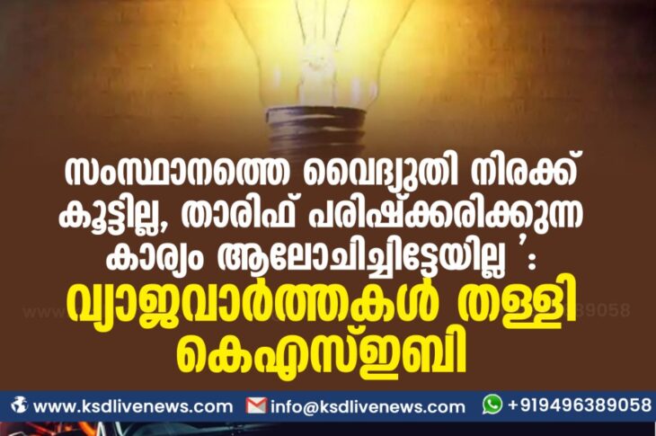 കേരളം സംസ്ഥാനത്തെ വൈദ്യുതി നിരക്ക് കൂട്ടില്ല , താരിഫ് പരിഷ്ക്കരിക്കുന്ന കാര്യം ആലോചിച്ചിട്ടേയില്ല ‘ : വ്യാജവാർത്തകൾ തള്ളി കെഎസ്ഇബിDecember 12, 2020