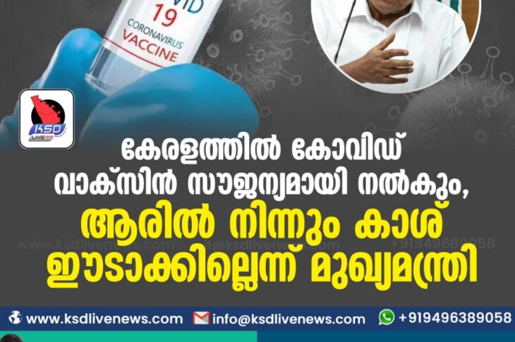 കേരളംകോവിഡ് 19 കേരളത്തില് കോവിഡ് വാക്സിന് സൗജന്യമായി നല്കും, ആരില് നിന്നും കാശ് ഈടാക്കില്ലെന്ന് മുഖ്യമന്ത്രിDecember 12, 2020