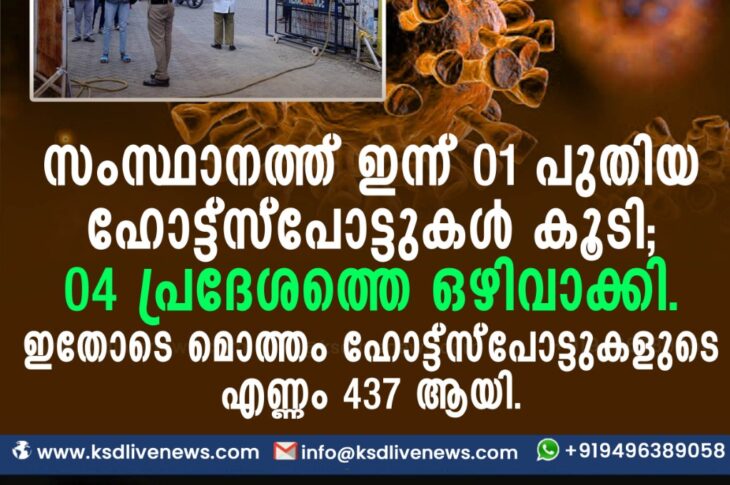 കേരളംകോവിഡ് 19 സംസ്ഥാനത്ത് ഇന്ന് 01 പുതിയ ഹോട്ട്സ്പോട്ടുകള് കൂടി; 04 പ്രദേശങ്ങളെ ഒഴിവാക്കി. ഇതോടെ മൊത്തം ഹോട്ട്സ്പോട്ടുകളുടെ എണ്ണം 437 ആയി.December 12, 2020