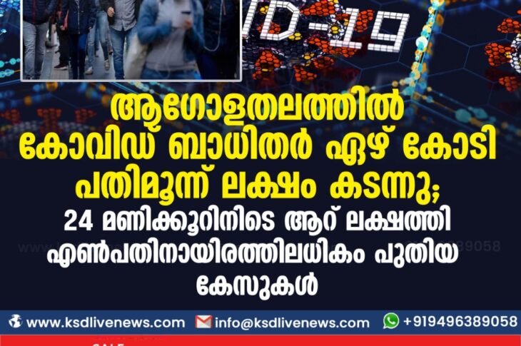 കോവിഡ് 19വിദേശം ആഗോളതലത്തിൽ കോവിഡ് ബാധിതർ ഏഴ് കോടി പതിമൂന്ന് ലക്ഷം കടന്നു ; . 24 മണിക്കൂറിനിടെ ആറ് ലക്ഷത്തി എണ്പതിനായിരത്തിലധികം പുതിയ കേസുകൾDecember 12, 2020