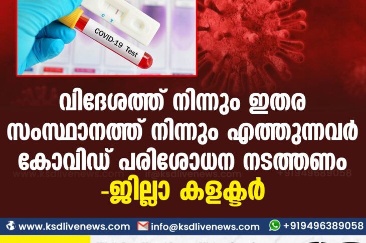 കാസർഗോഡ്കോവിഡ് 19 വിദേശത്ത് നിന്നും ഇതര സംസ്ഥാനത്ത് നിന്നും എത്തുന്നവർ കോവിഡ് പരിശോധന നടത്തണം- ജില്ലാ കളക്ടർDecember 10, 2020