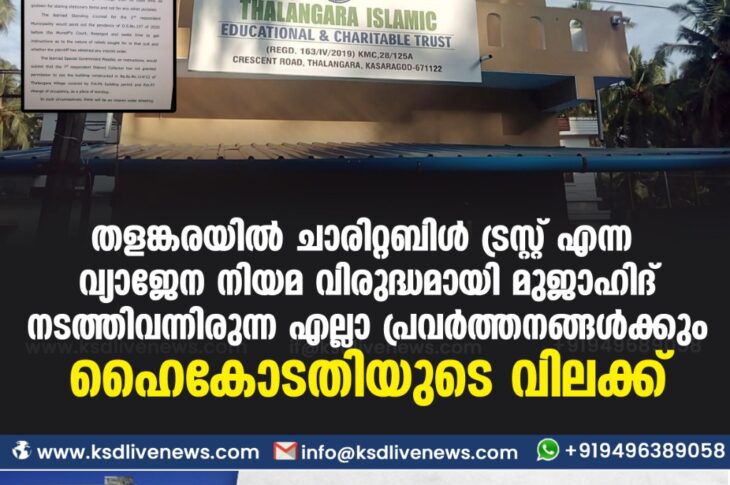 പ്രാദേശികം തളങ്കര യിൽ ചാരിറ്റബിൾ ട്രസ്റ്റ് എന്ന വ്യാജേന നിയമ വിരുദ്ധമായി മുജാഹിദ് നടത്തിവന്നിരുന്ന എല്ലാ പ്രവർത്തനങ്ങൾക്കും ഹൈകോടതിയുടെ വിലക്ക്December 9, 2020