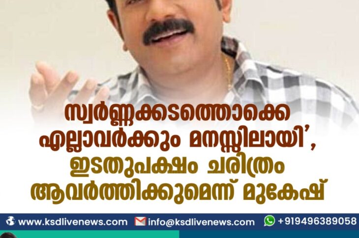 കേരളം സ്വർണ്ണക്കടത്തൊക്കെ എല്ലാവർക്കും മനസ്സിലായി’, ഇടതുപക്ഷം ചരിത്രം ആവർത്തിക്കുമെന്ന് മുകേഷ്December 9, 2020