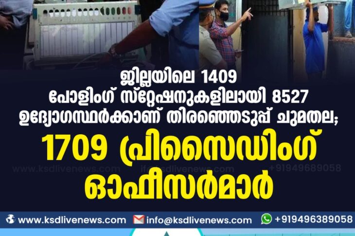 കാസർഗോഡ് ജില്ലയിലെ 1409 പോളിംഗ് സ്റ്റേഷനുകളിലായി 8527 ഉദ്യോഗസ്ഥര്ക്കാണ് തിരഞ്ഞെടുപ്പ് ചുമതല ; 1709 പ്രിസൈഡിംഗ് ഓഫീസര്മാര്December 9, 2020