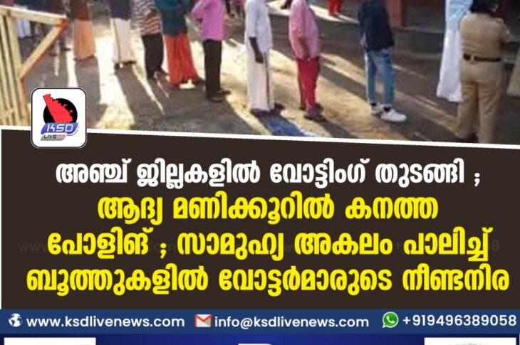 കേരളം അഞ്ച് ജില്ലകളിൽ വോട്ടിംഗ് തുടങ്ങി ;ആദ്യ മണിക്കൂറില് കനത്ത പോളിങ് ; സാമുഹ്യ അകലം പാലിച്ച് ബൂത്തുകളില് വോട്ടര്മാരുടെ നീണ്ടനിരDecember 8, 2020