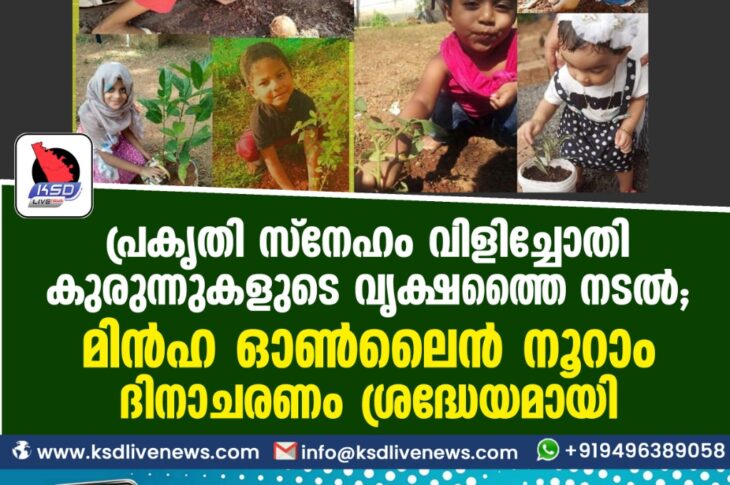 പ്രാദേശികം പ്രകൃതി സ്നേഹം വിളിച്ചോതി കുരുന്നുകളുടെ വൃക്ഷത്തെ നടൽ ;മിൻഹ ഓൺലൈൻ നൂറാം ദിനാചരണം ശ്രദ്ധേയമായിDecember 7, 2020