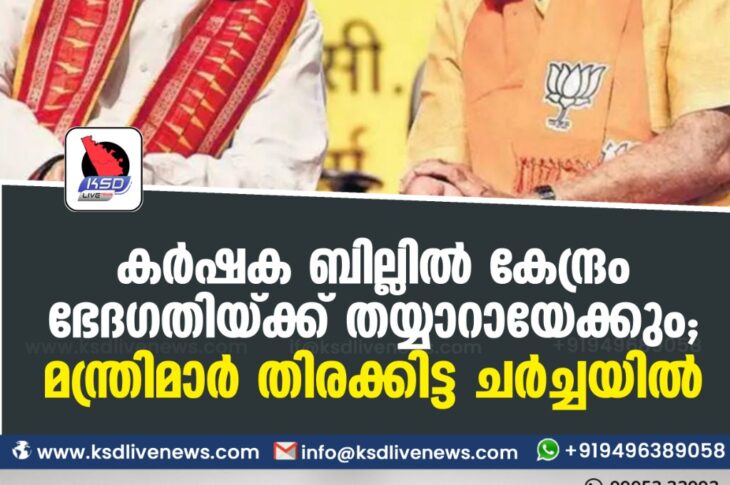 ദേശീയം കർഷക ബില്ലിൽ കേന്ദ്രം ഭേദഗതിയ്ക്ക് തയ്യാറായേക്കും ; മന്ത്രിമാർ തിരക്കിട്ട ചർച്ചയിൽDecember 5, 2020