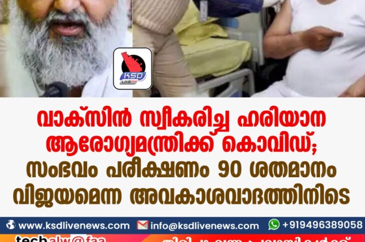 കോവിഡ് 19ദേശീയം വാക്സിൻ സ്വീകരിച്ച ഹരിയാന ആരോഗ്യമന്ത്രിക്ക് കൊവിഡ് ; സംഭവം പരീക്ഷണം 90 ശതമാനം വിജയമെന്ന അവകാശവാദത്തിനിടെDecember 5, 2020