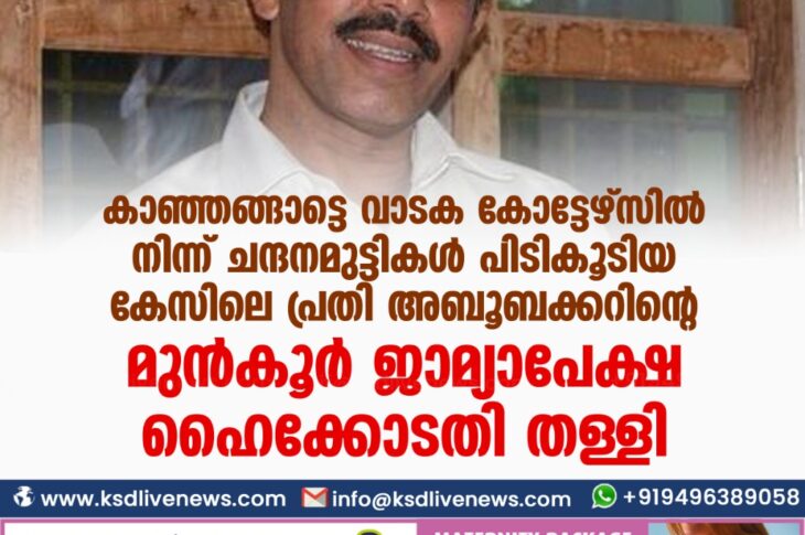 പ്രാദേശികം കാഞ്ഞങ്ങാട്ടെ വാടക കോട്ടേഴ്സിൽ നിന്ന് ചന്ദനമുട്ടികൾ പിടികൂടിയ കേസിലെ പ്രതി അബൂബക്കറിന്റെ മുൻകൂർ ജാമ്യാപേക്ഷ ഹൈക്കോടതി തള്ളിDecember 4, 2020