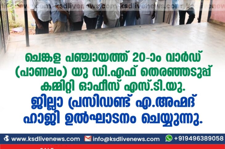 പ്രാദേശികം ചെങ്കള പഞ്ചായത്ത് 20-ാം വാർഡ് (പാണലം) യു ഡി.എഫ് തെരഞ്ഞടുപ്പ് കമ്മിറ്റി ഓഫീസ് എസ്.ടി.യു. ജില്ലാ പ്രസിഡണ്ട് എ.അഹ്മദ് ഹാജി ഉൽഘാടനം ചെയ്യുന്നു.December 3, 2020