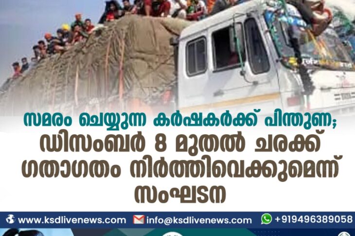 ദേശീയം സമരം ചെയ്യുന്ന കർഷകർക്ക് പിന്തുണ; ഡിസംബർ 8 മുതൽ ചരക്ക് ഗതാഗതം നിർത്തിവെക്കുമെന്ന് സംഘടനDecember 2, 2020