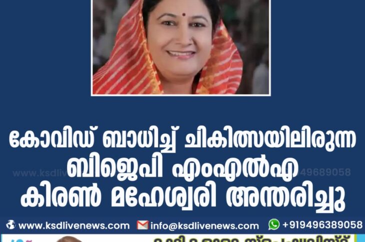 കോവിഡ് 19ദേശീയം കോവിഡ് ബാധിച്ച് ചികിത്സയിലിരുന്ന ബിജെപി എംഎൽഎ കിരൺ മഹേശ്വരി അന്തരിച്ചുNovember 30, 2020