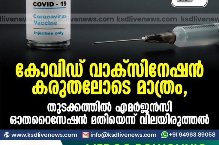 ദേശീയം കോവിഡ് വാക്സിനേഷൻ കരുതലോടെ മാത്രം , തുടക്കത്തിൽ ‘ എമർജൻസി ഓതറൈസേഷൻ ‘ മതിയെന്ന് വിലയിരുത്തൽNovember 15, 2020