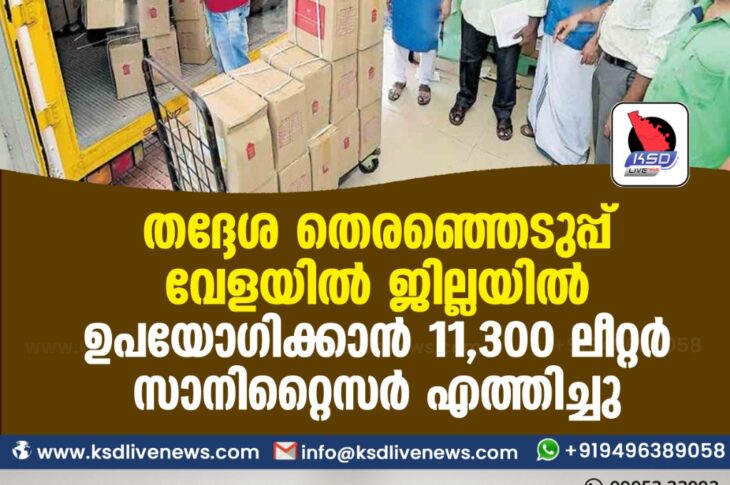കാസർഗോഡ് തദ്ദേശ തെരഞ്ഞെടുപ്പ് വേളയിൽ ജില്ലയിൽ ഉപയോഗിക്കാന് 11,300 ലീറ്റർ സാനിറ്റൈസർ എത്തിച്ചുNovember 30, 2020