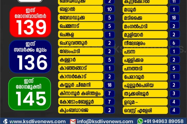 കാസർഗോഡ്കോവിഡ് 19 കാസർഗോഡ് ജില്ലയിൽ ഇന്ന് കോവിഡ് പോസിറ്റീവായവരുടെ പഞ്ചായത്ത് തിരിച്ചുള്ള സ്ഥിതി വിവര കണക്ക്November 14, 2020