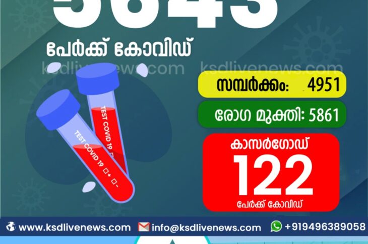 കേരളംകോവിഡ് 19 സംസ്ഥാനത്ത് ഇന്ന് 5643 പേർക്ക് കോവിഡ് സ്ഥിരീകരിച്ചു. സമ്പർക്കം വഴി 4951 പേർക്കും ; ആശ്വാസമായി 5861 പേർക്ക് രോഗ മുക്തിയും ; കാസർഗോഡ് ജില്ലയിൽ 123 പേർക്ക് പുതിയ കോവിഡ് കേസുകൾ ; മരണം 27November 29, 2020