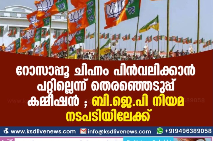 കേരളം റോസാപ്പൂ ചിഹ്നം പിൻവലിക്കാൻ പറ്റില്ലെന്ന് തെരഞ്ഞെടുപ്പ് കമ്മീഷൻ ; ബി.ജെ.പി നിയമ നടപടിയിലേക്ക്November 29, 2020