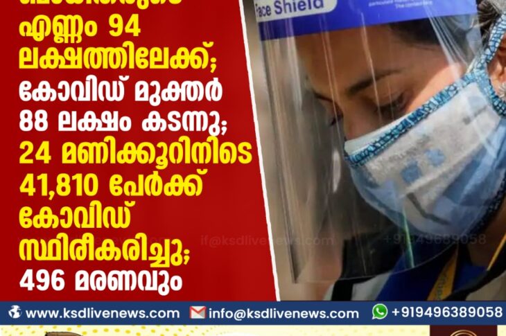 เดเตเดตเดฟเดกเต 19เดฆเตเดถเตเดฏเด เดฐเดพเดเตเดฏเดคเตเดคเต เดเตเดตเดฟเดกเต เดฌเดพเดงเดฟเดคเดฐเตเดเต เดเดฃเตเดฃเด 94 เดฒเดเตเดทเดคเตเดคเดฟเดฒเตเดเตเดเต; เดเตเดตเดฟเดกเต เดฎเตเดเตเดคเตผ 88 เดฒเดเตเดทเด เดเดเดจเตเดจเต ;24 เดฎเดฃเดฟเดเตเดเตเดฑเดฟเดจเดฟเดเต 41,810 เดชเตเตผเดเตเดเต เดเตเดตเดฟเดกเต เดธเตเดฅเดฟเดฐเตเดเดฐเดฟเดเตเดเต ; 496 เดฎเดฐเดฃเดตเตเดNovember 29, 2020
