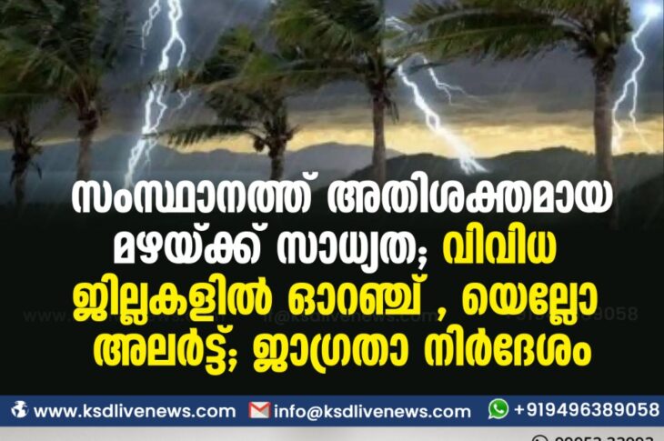 കേരളം സംസ്ഥാനത്ത് അതിശക്തമായ മഴയ്ക്ക് സാധ്യത ; വിവിധ ജില്ലകളിൽ ഓറഞ്ച് , യെല്ലോ അലർട്ട് ; ജാഗ്രതാ നിർദേശംNovember 28, 2020