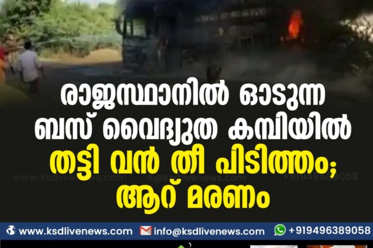 രാജസ്ഥാനിൽ ഓടുന്ന ബസ് വൈദ്യുത കമ്പിയിൽ തട്ടി വൻ തീ പിടിത്തം ; ആറ് മരണം