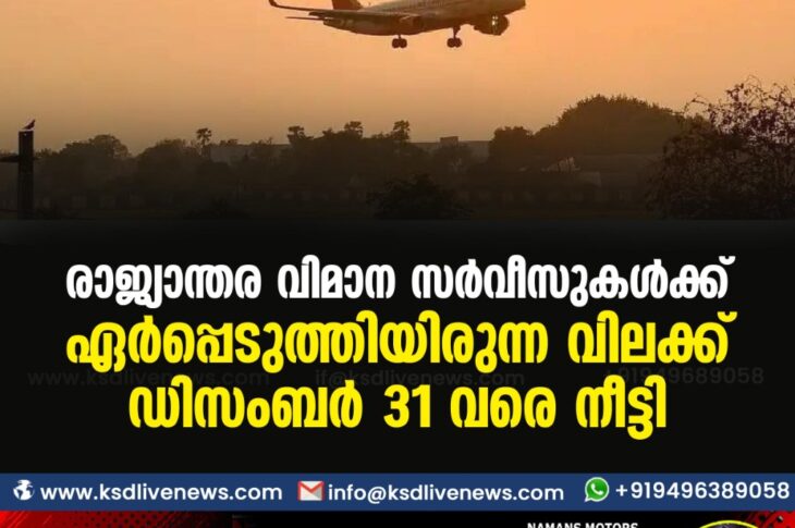 ദേശീയം രാജ്യാന്തര വിമാന സർവീസുകൾക്ക് ഏർപ്പെടുത്തിയിരുന്ന വിലക്ക് ഡിസംബർ 31 വരെ നീട്ടിNovember 27, 2020