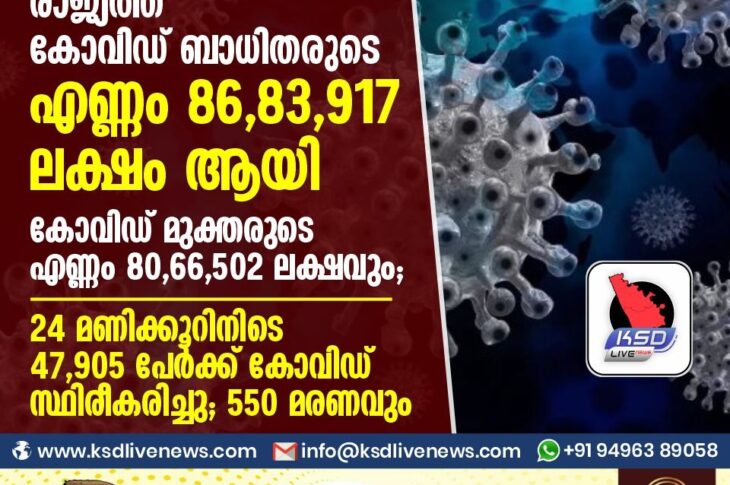 เดเตเดตเดฟเดกเต 19เดฆเตเดถเตเดฏเด เดฐเดพเดเตเดฏเดคเตเดค เดเตเดตเดฟเดกเต เดฌเดพเดงเดฟเดคเดฐเตเดเต เดเดฃเตเดฃเด 86,83,917 เดฒเดเตเดทเด เดเดฏเดฟ ; เดเตเดตเดฟเดกเต เดฎเตเดเตเดคเดฐเตเดเต เดเดฃเตเดฃเด 80,66,502 เดฒเดเตเดทเดตเตเด ;24 เดฎเดฃเดฟเดเตเดเตเดฑเดฟเดจเดฟเดเต 47,905 เดชเตเตผเดเตเดเต เดเตเดตเดฟเดกเต เดธเตเดฅเดฟเดฐเตเดเดฐเดฟเดเตเดเต ; 550 เดฎเดฐเดฃเดตเตเดNovember 12, 2020