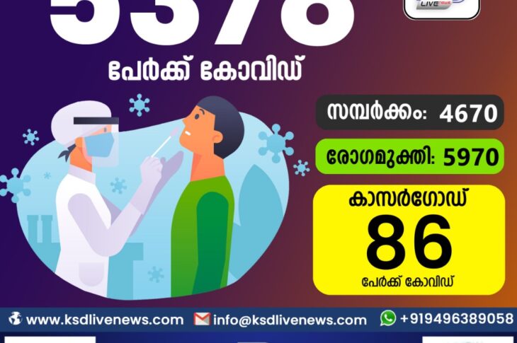കേരളംകോവിഡ് 19 സംസ്ഥാനത്ത് ഇന്ന് 5378 പേർക്ക് കോവിഡ് സ്ഥിരീകരിച്ചു. സമ്പർക്കം വഴി 4670 പേർക്കും ; ആശ്വാസമായി 5970 പേർക്ക് രോഗ മുക്തിയും ; കാസർഗോഡ് ജില്ലയിൽ 86 പേർക്ക് പുതിയ കോവിഡ് കേസുകൾ ; മരണം 27November 26, 2020